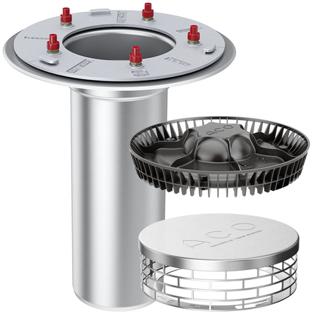Edelstahl ist ein widerstandsfähiges und vielseitiges Material, ideal für den Einsatz in Bereichen mit hoher Feuchtigkeit wie bei der Dachentwässerung großer Industriebauten. Die Montage der ACO Edelstahlabläufe in Betondächern ist einfach, entweder durch Eingießen oder mittels Kernbohrung. Bei Trapezblechdächern ist ein Abdeckblech für die Installation der Dachabläufe unerlässlich. Zusätzlich können die ACO Flachdachabläufe Spin aus Edelstahl mit einer Begleitheizung versehen werden.