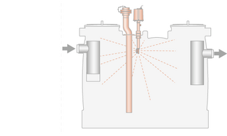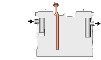 Bei Einbau des Fettabscheiders unterhalb der Rückstauebene ist die Entwässerung über eine Doppelhebeanlage sicherzustellen. Üblicherweise bildet bei Fettabscheidern, die im Untergeschoss eingebaut werden, die Straßenoberkante (Bordsteinkante) die Rückstauebene. Somit muss nahezu jeder Fettabscheider über eine Doppelhebeanlage entwässert werden. Dies sollte man strikt, ganz besonders bei frei aufgestellten Abscheidern im Gebäude, beachten, auch wenn nur gelegentlich Rückstaugefahr besteht. Der Fettabscheider ist nur für den drucklosen Betrieb geeignet und zugelassen. Eine Doppelhebeanlage muss eingebaut werden (Vorschrift im industriellen und gewerblichen Bereich), um bei Ausfall einer Pumpe